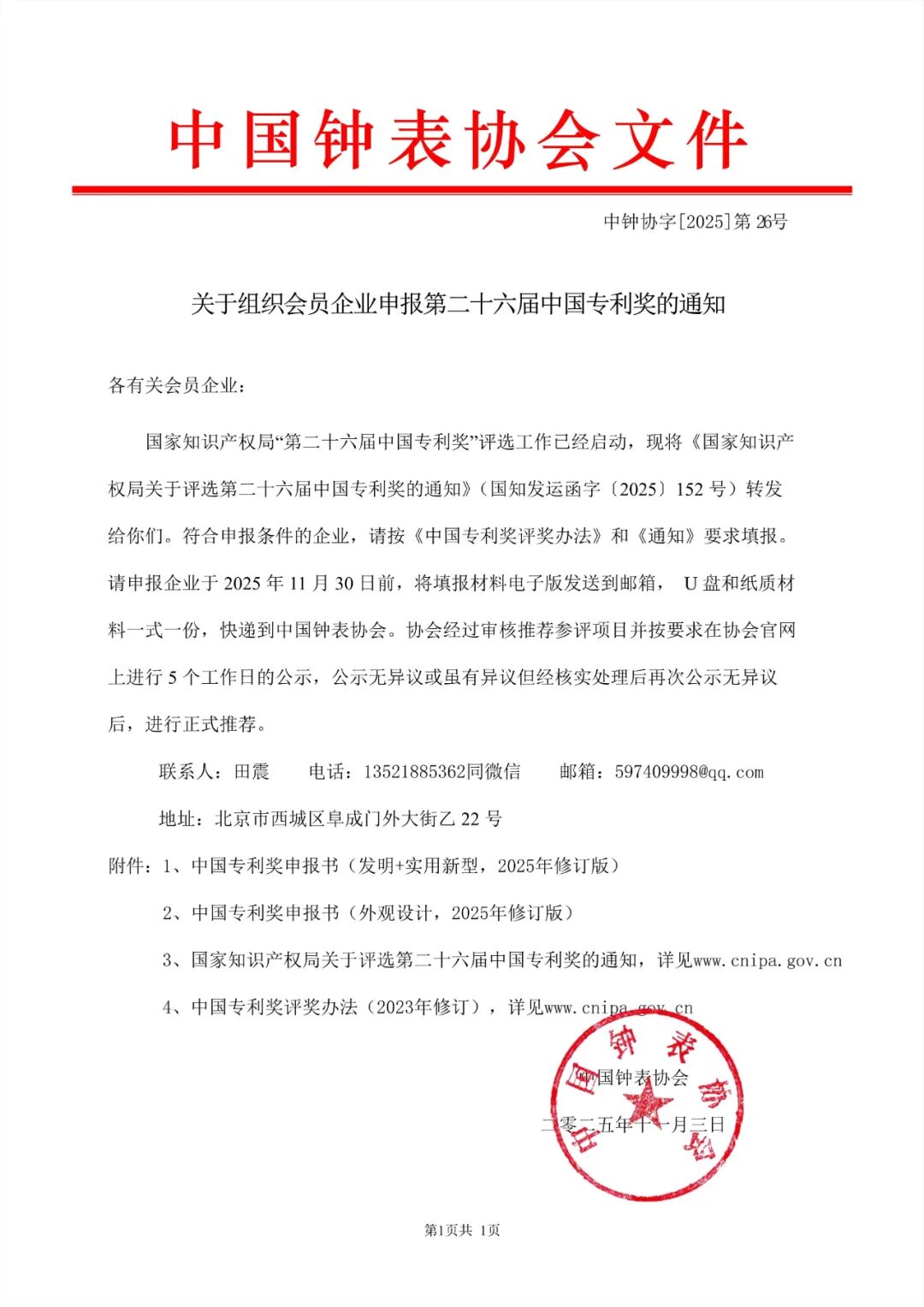 关于组织会员企业申报第二十六届中国专利奖的通知