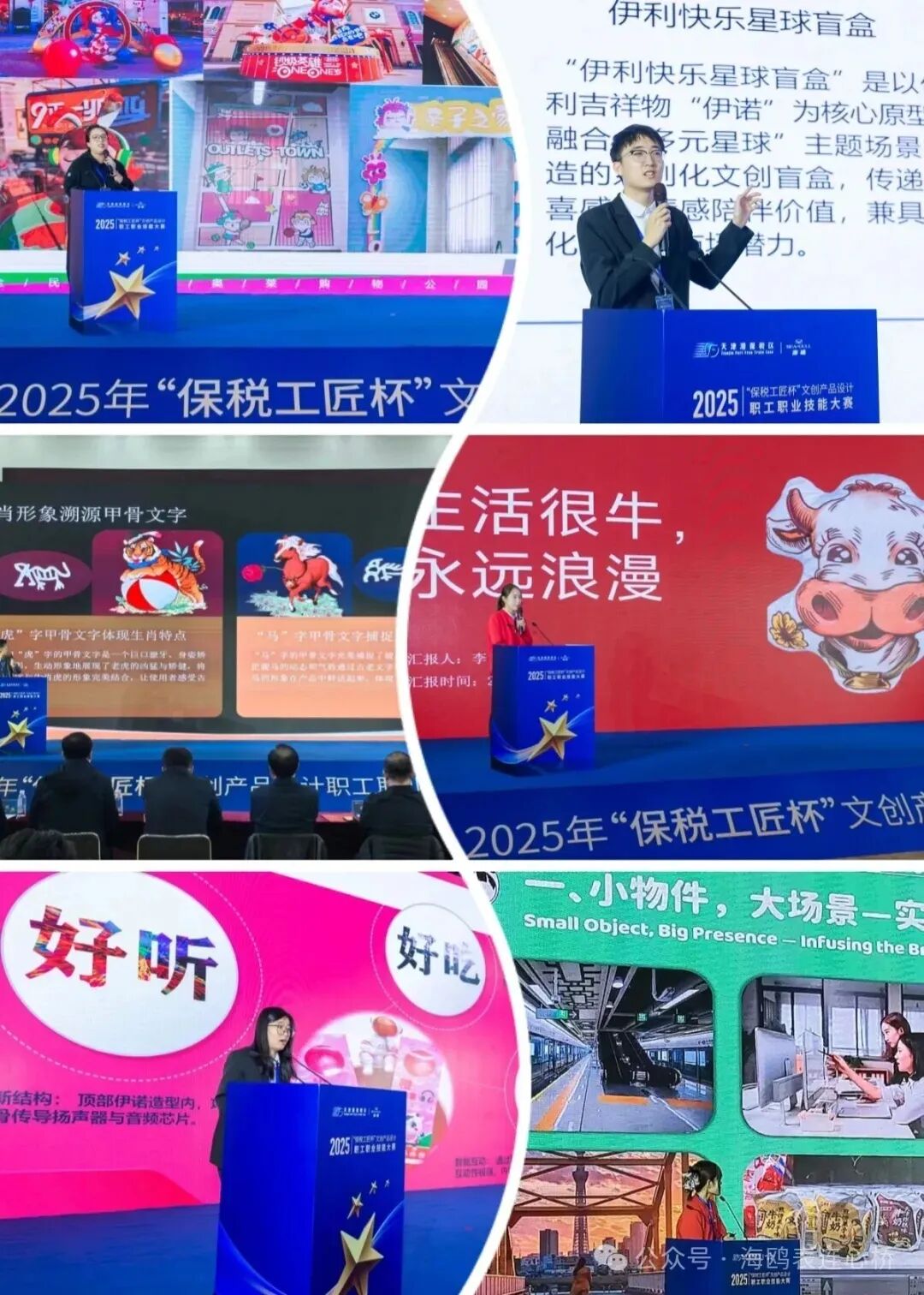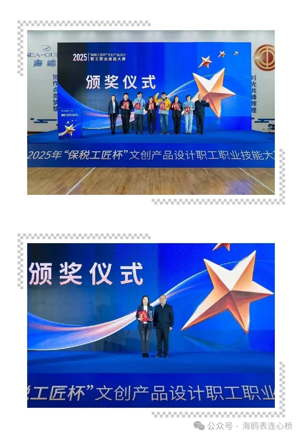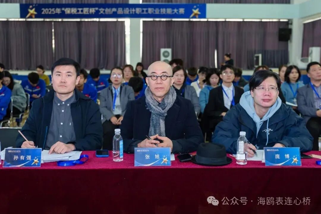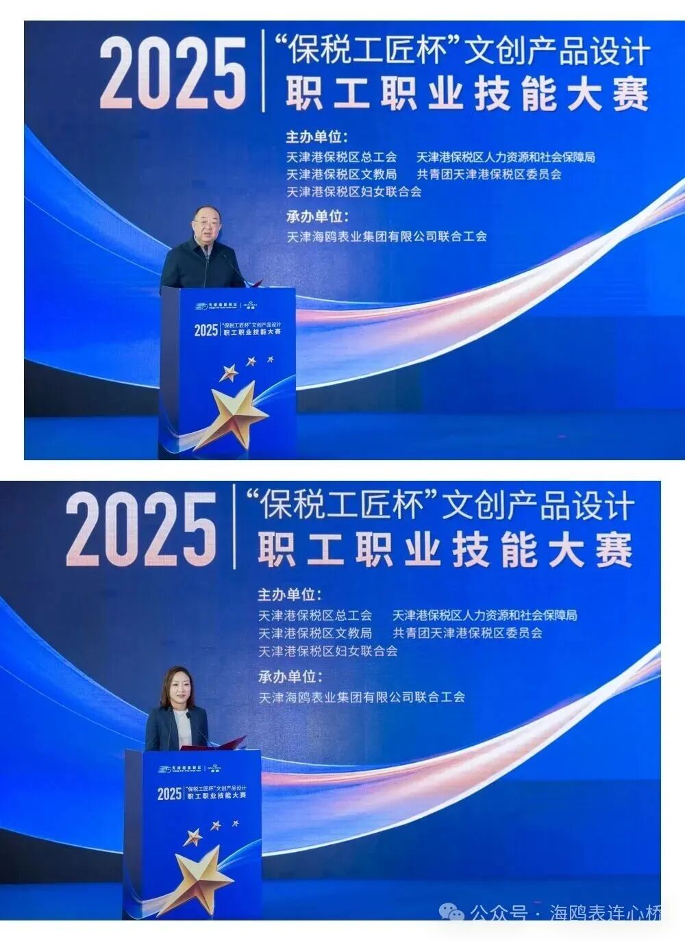 11月5日,由天津港保税区总工会、人社局、文教局、团委、妇联主办,天津海鸥表业集团有限公司联合工会承办的2025年“保税工匠杯”文创产品设计职工职业技能大赛在天津海鸥表业集团有限公司成功举办。 开幕仪式由天津港保税区群团工作部副部长、总工会副主席遆洪亮主持,天津海鸥表业集团有限公司党委副书记、工会主席、天津海鸥文化传播有限公司总经理施婷婷致欢迎辞,天津港保税区人力资源和社会保障局副局长刘航为大赛致辞。随后,天津港保税区文教局局长沈习春宣布比赛正式开始。大赛特别邀请了天津美术学院设计艺术学院副教授孙有强、天津美术学院视觉传达设计系副教授张旭和天津工业大学艺术学院教授庞博坐镇现场打分点评。 大赛源于一份深厚的文化自信与对每一位员工的珍视。自启动以来,赛事吸引保税区多家单位积极响应,经层层选拔,最终7个单位的23件作品脱颖而出,以多元创意巧思角逐文创设计桂冠。现场同时设立了参赛作品实物展区,为公众提供了一个近距离感受文化创意魅力的平台。