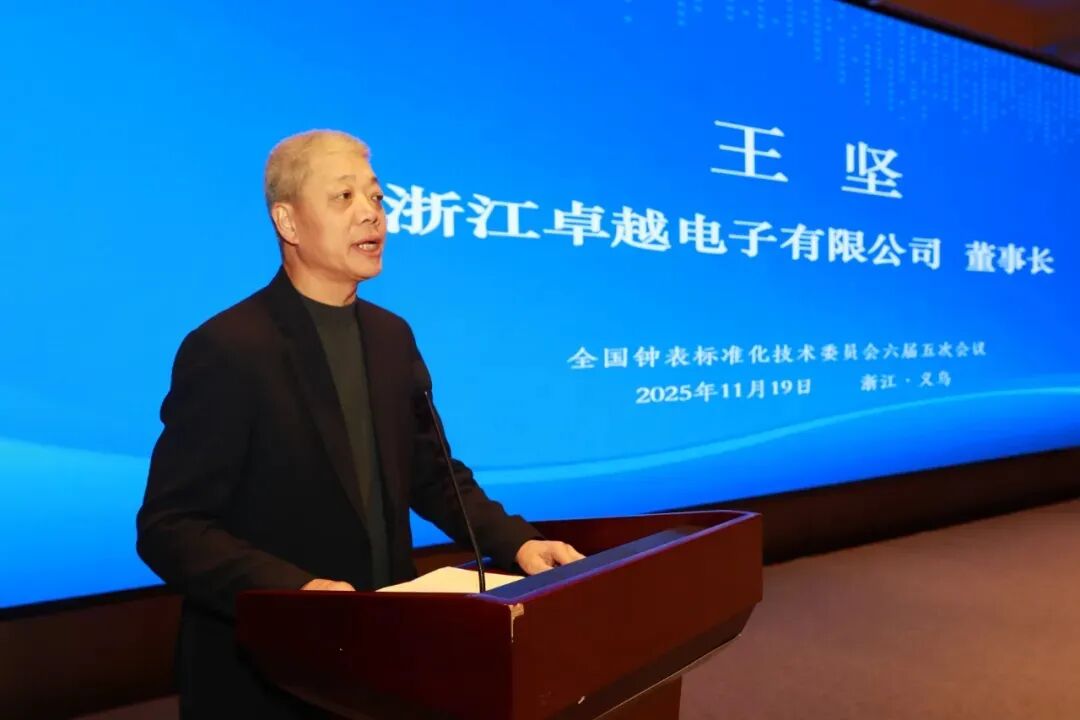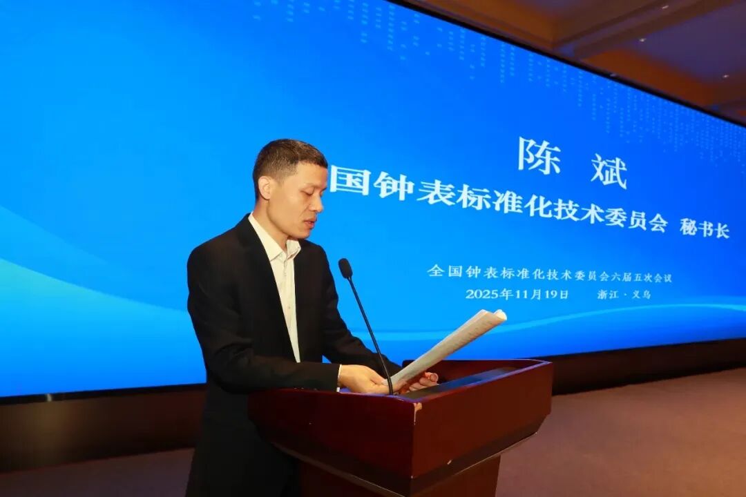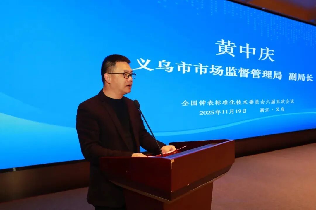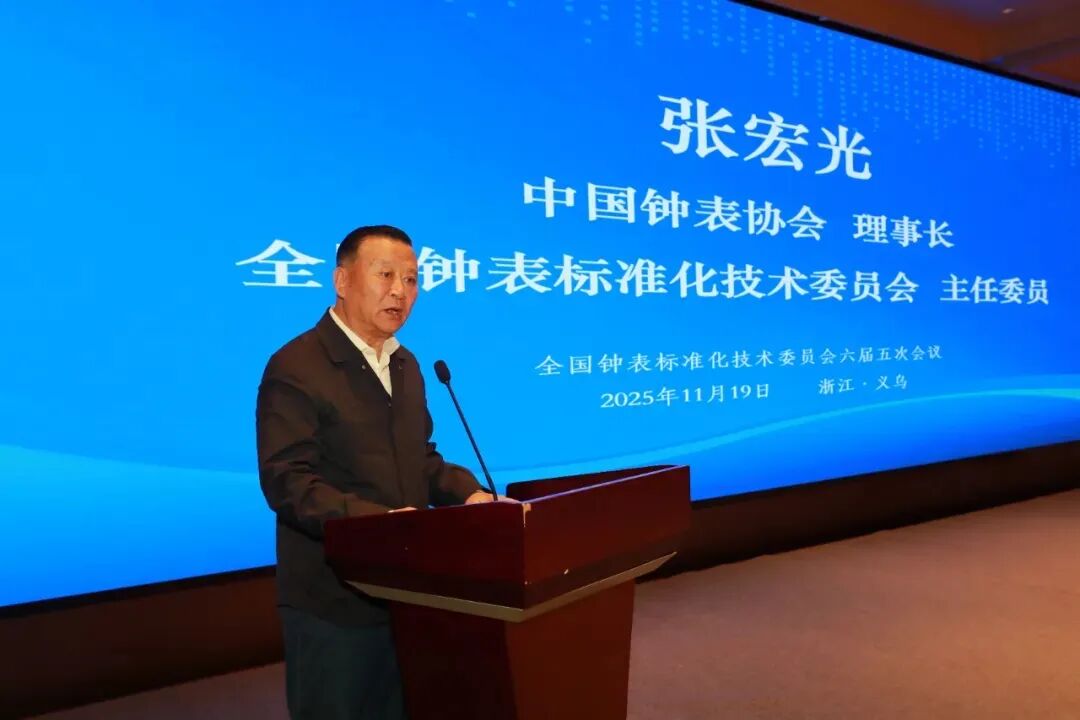 2025年11月18日至20日,全国钟表标准化技术委员会(SAC/TC 160)六届五次会议在义乌市顺利召开。会议由全国钟表标准化技术委员会主办,义乌市标准化研究院、浙江卓越电子有限公司和西安轻工业钟表研究所有限公司共同协办。全国钟表标准化技术委员会主任委员、中国钟表协会理事长张宏光,义乌市市场监督管理局副局长黄中庆,义乌市市场监督管理局标准计量与科技评管科科长王瑜,义乌市标准化研究院院长周江,西安轻工业钟表研究所有限公司党委书记、总经理张晔,广州市钟表行业商会会长林慧琼,义乌市钟表行业协会会长刘效成,浙江卓越电子有限公司董事长王坚等领导和嘉宾出席了本次大会。来自钟表行业企业、大专院校、检测机构和科研院所等80余家单位近100名委员、观察员、标准起草单位代表参加了会议。会议由全国钟表标准化技术委员会秘书长陈斌主持。 义乌市市场监督管理局黄中庆副局长在开幕式致辞中对与会代表的到来表示热烈欢迎。他介绍了义乌的发展成就,以及标准化领域的显著成效,此次会议的召开,对于进一步完善标准体系、加速钟表产业的转型升级具有显著推动作用,希望与会代表能借此机会深入交流,在各级标准制修订、科技成果标准化等关键领域开展深度协作,以高端智慧助力钟表产业标准化水平再上新台阶议。 全国钟表标准化技术委员会主任委员、中国钟表协会理事长张宏光在开幕式讲话中简要回顾了2025年以及“十四五”期间钟表标准化总体情况,并介绍了“十五五”期间钟表行业发展思路和标准化工作重点。