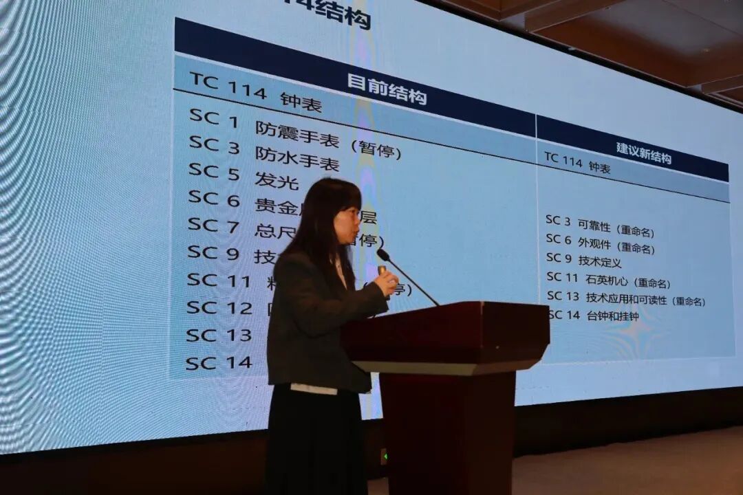 全国钟表标准化技术委员会秘书长陈斌在开幕式上做工作报告,从标准体系维护、标准制修订、标准复审、标准化科研与服务、国际标准化、财务报告、重点工作等方面对2025年钟表标委会工作进行了全面总结。同时,他还从“十五五”钟表标准化重点领域规划、国内标准化工作、国际标准化工作等方面,对2026年工作计划进行了说明。此外,开幕式上还为荣获2024-2025年度先进单位和先进个人颁发了荣誉证书。 本次会议期间,与会委员和参会代表审查了3项国家标准制修订项目的送审稿及其相关文件。会议闭幕式上,全体参会代表一致通过了该3项标准的审查结论及大会会议纪要。闭幕式后,还召开了国家标准GB/T 41411-2022《儿童手表》专题宣贯培训会,由该标准的主要起草人王坚委员宣讲。 本次会议在秘书处的积极筹备和协办单位的大力支持下,通过全体参会代表的积极努力和配合,完成了各项会议既定任务,会议取得圆满成功!