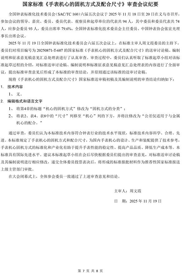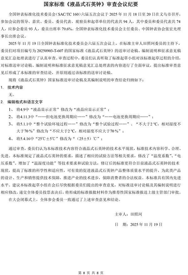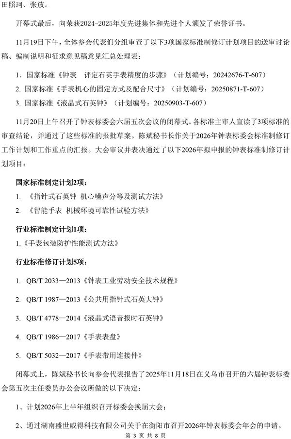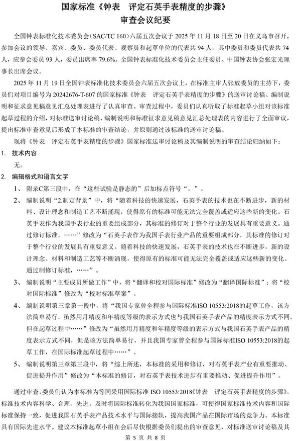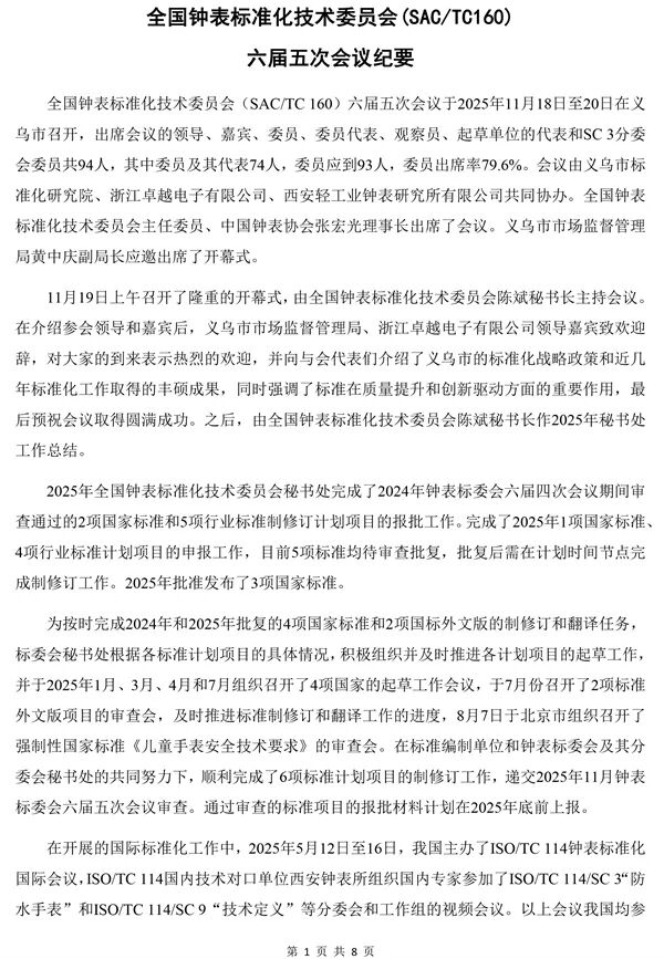 全国钟表标准化技术委员会六届五次会议纪要