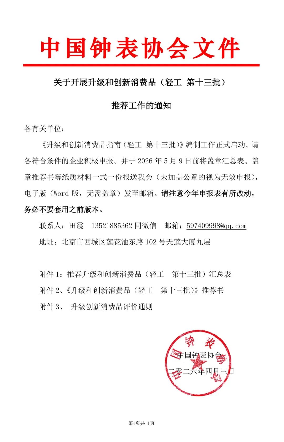 关于开展升级和创新消费品(轻工第十三批)推荐工作的通知