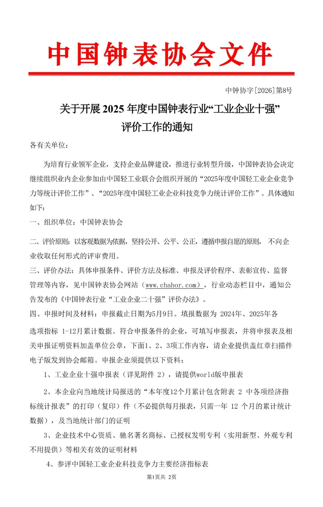关于开展2025年度中国“工业企业十强”评价工作的通知